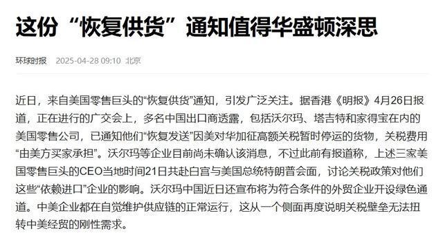 毕竟,关税战爆发以来,这些企业比任何人都不希望货架空。